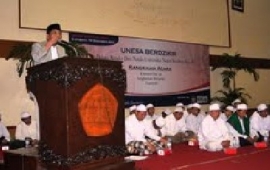 Sejak pukul 07.00, terdengar alunan merdu bacaan kitab suci Al Quran yang dilantunkan oleh agnggota UKKI Unesa sampai akan dimulainya zikir bersama pukul 15.00 di gedung ...