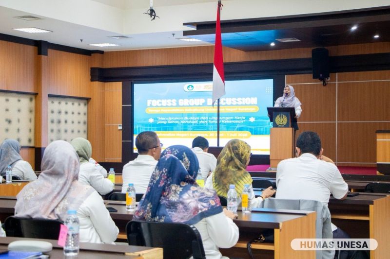 Unesa.ac.id. SURABAYA—Universitas Negeri Surabaya (Unesa) melalui Direktorat Pencegahan dan Penanggulangan Isu Strategis (PPIS) menggelar Focus Group Discussion (FGD) bertema "Menciptakan Budaya dan Lingkungan Kerja yang Sehat, ...