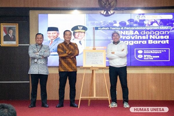 Unesa.ac.id. SURABAYA—Pimpinan Universitas Negeri Surabaya (Unesa) dan gubernur Nusa Tenggara Barat (NTB) beserta jajarannya membahas program kerja sama dalam pertemuan yang berlangsung di Rektorat Unesa, Kampus ...