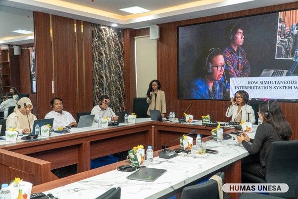 Unesa.ac.id. SURABAYA—Universitas Negeri Surabaya (Unesa) mengadakan pertemuan dengan Bali Interpreting terkait pengenalan alat penjurubahasaan simultaneous di Meeting Room, Lantai 10 Rektorat, Kampus 2 Lidah Wetan, pada ...