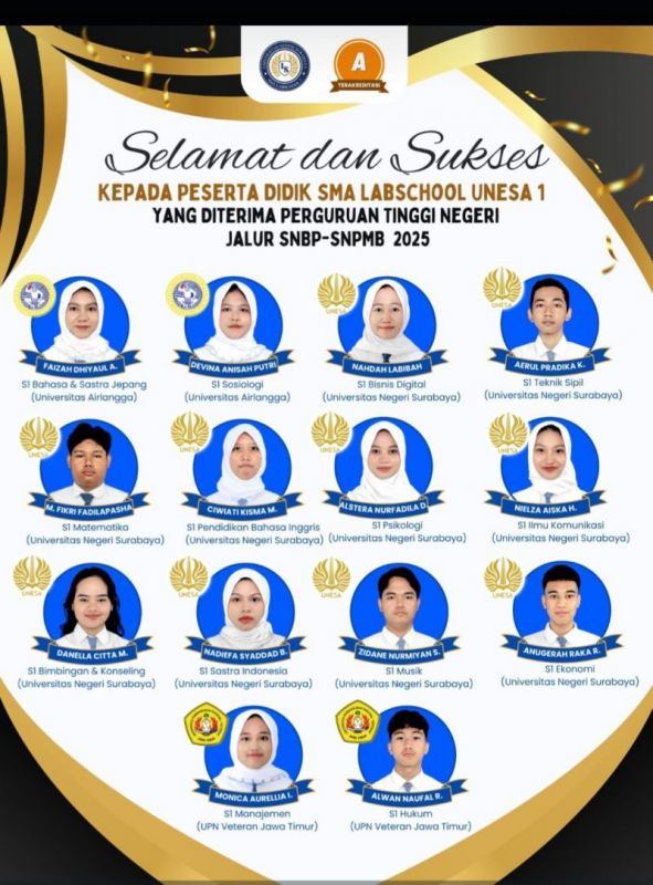 Unesa.ac.id. SURABAYA—Kualitas pendidikan pada satuan pendidikan menengah atas dapat diukur dari berbagai aspek, salah satunya bisa dilihat dari keberhasilan siswa atau lulusannya yang diterima di perguruan ...