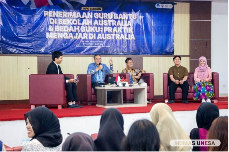 Unesa.ac.id., SURABAYA—Atase Pendidikan dan Kebudayaan (Atdikbud) KBRI Canberra dan Universitas Negeri Surabaya (Unesa) sharing tentang penerimaan guru bantu di sekolah Australia dan bedah buku ”Praktik Mengajar ...