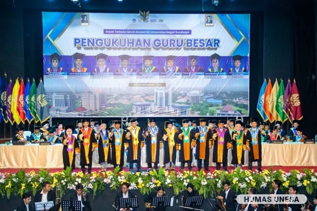 Unesa.ac.id. SURABAYA—Guru besar Universitas Negeri Surabaya (UNESA) terus bertambah. Terbaru, kampus 'Rumah Para Juara' mengukuhkan sembilan profesor atau guru besar dalam Rapat Terbuka Senat Akademik yang ...