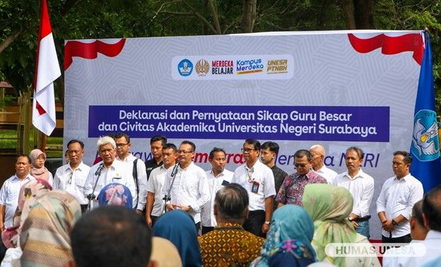 Unesa.ac.id., SURABAYA—Guru besar, sivitas akademika, dan alumni Universitas Negeri Surabaya (UNESA) melakukan deklarasi bertajuk 'Mengawal Demokrasi, Menjaga NKRI' di Laboratorium Merdeka Belajar, Kampus II Lidah Wetan, ...