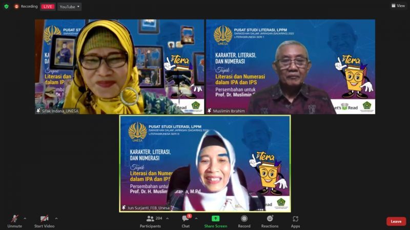 Unesa.ac.id, SURABAYA–Pusat Studi Literasi, Lembaga Penelitian dan Pengabdian Masyarakat (LPPM), Universitas Negeri Surabaya (UNESA) menggelar sarasehan secara daring dengan tema “Karakter, Literasi, dan Numerasi” pada Sabtu, ...