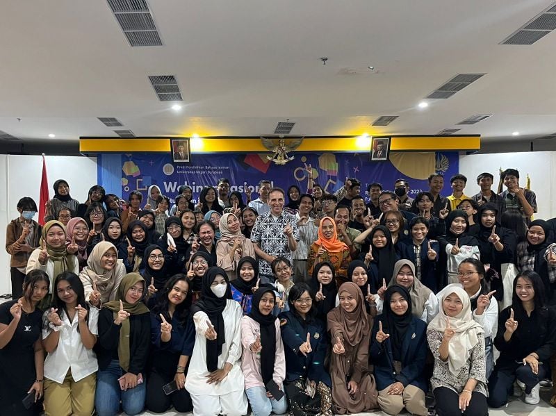 Unesa.ac.id., SURABAYA–Prodi Pendidikan Bahasa Jerman, Fakultas Bahasa dan Seni (FBS) Universitas Negeri Surabaya (UNESA) menyelenggarakan Seminar Nasional Studieren in Deutschland, di Auditorium T14 FBS, Kampus Lidah Wetan pada Rabu, 20 September 2023. Dosen dari Bielefeld University, Jerman, Dr. Johannes Tschapka., sebagai pematerinya.
