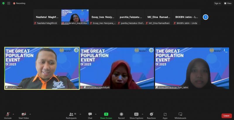 Unesa.ac.id, SURABAYA—Unit Kegiatan Mahasiswa (UKM) Kependudukan UNESA bekerja sama dengan Badan Kependudukan dan Keluarga Berencana Nasional (BKKBN) Jawa Timur melaksanakan grand final The Great Population Event IX 2023 secara daring pada Minggu, 29 Oktober 2023. Kegiatan ini mengusung tema 'Menuju Keluarga Bebas Stunting Untuk Indonesia Sejahtera'.