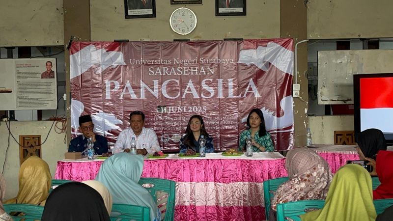 Unesa.ac.id., SURABAYA—Pengabdian Kepada Masyarakat (PKM) Desa Pancasila Universitas Negeri Surabaya (Unesa) sukses digelar di beberapa daerah di Jawa Timur pada 14-16 Juni 2025. Beragam kegiatan yang dilaksanakan seperti sharing session, seminar pancasila, konservasi cemara laut, festival kebangsaan, pelatihan moderasi beragama, hingga pelatihan desain dan pengemasan produk UMKM.