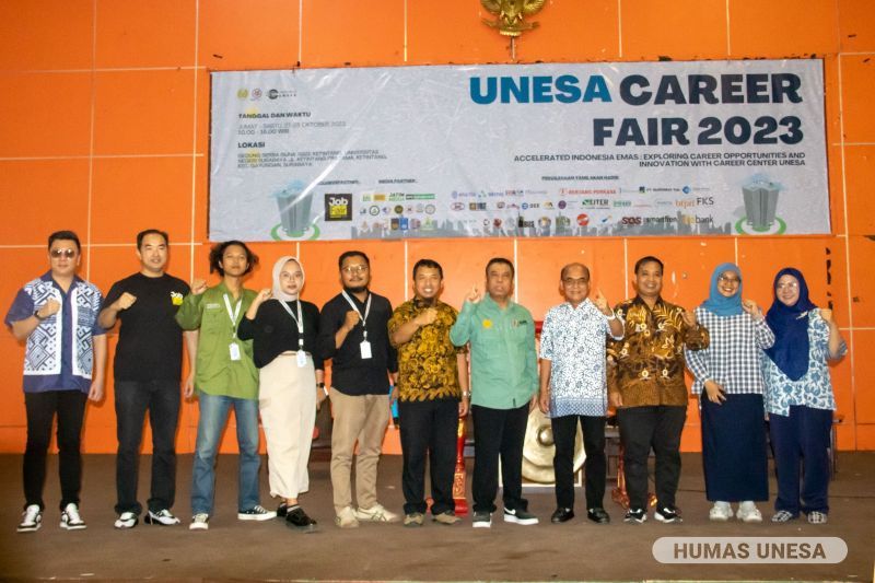 Unesa.ac.id, SURABAYA—Subdirektorat Layanan Bimbingan Konseling dan Karir, Direktorat Kemahasiswaan dan Alumni Universitas Negeri Surabaya (UNESA) menyelenggarakan Career Fair 2023 dengan tema “Accelerated Indonesia Emas: Exploring Career Opportunities and Innovation with Career Center UNESA” di Gedung Serbaguna, Kampus Ketintang, pada Jumat, 27 Oktober 2023.