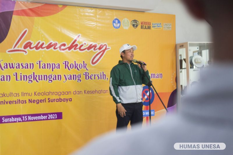 Unesa.ac.id Surabaya - Fakultas Ilmu Keolahragaan dan Kesehatan (FIKK), Universitas Negeri Surabaya (UNESA) launching Kawasan Tanpa Rokok dan Lingkungan yang Bersih, Tertib, dan Aman di Lobi Gedung U1 FIKK Kampus Lidah Wetan pada Rabu, 15 November 2023.